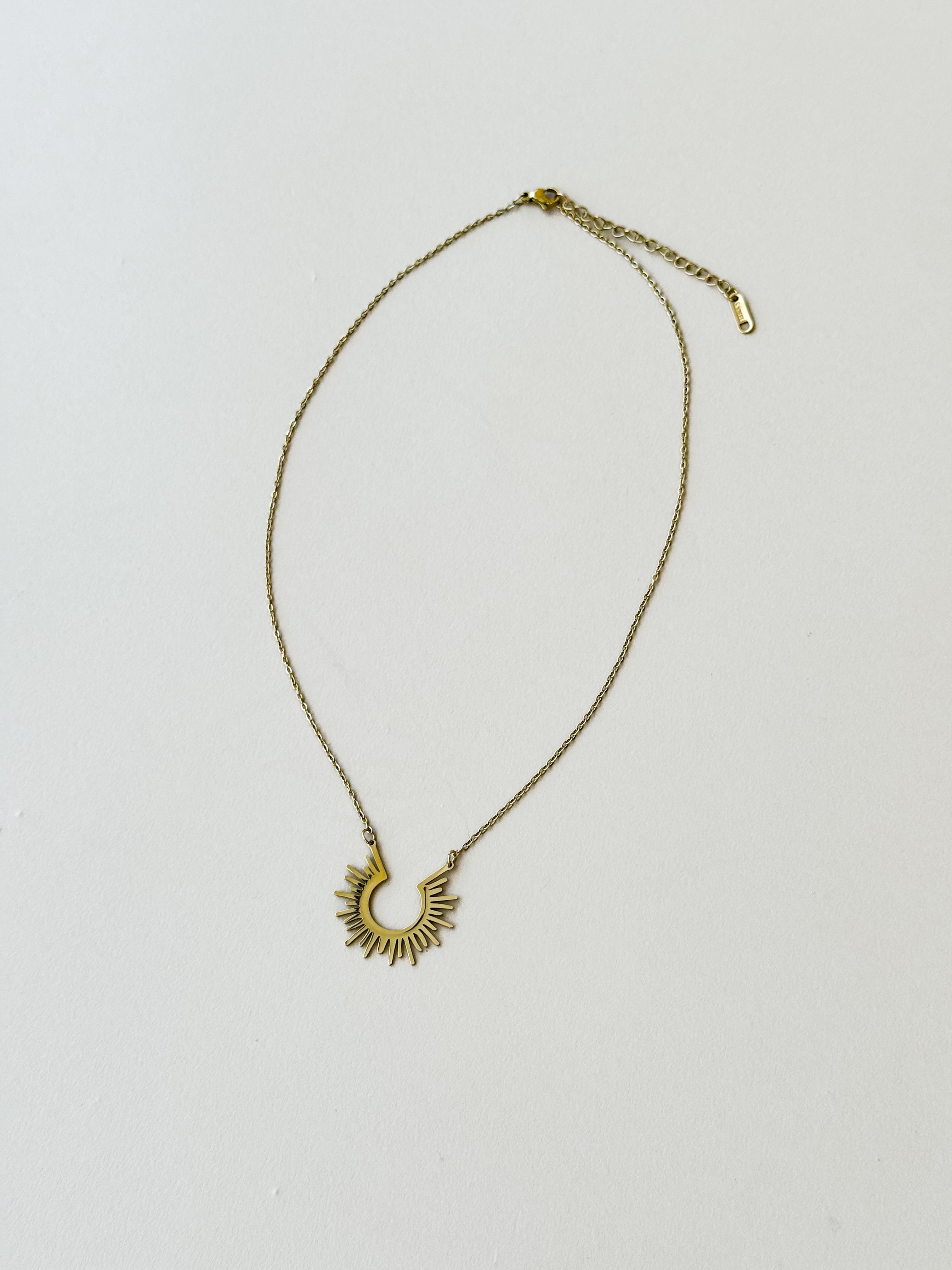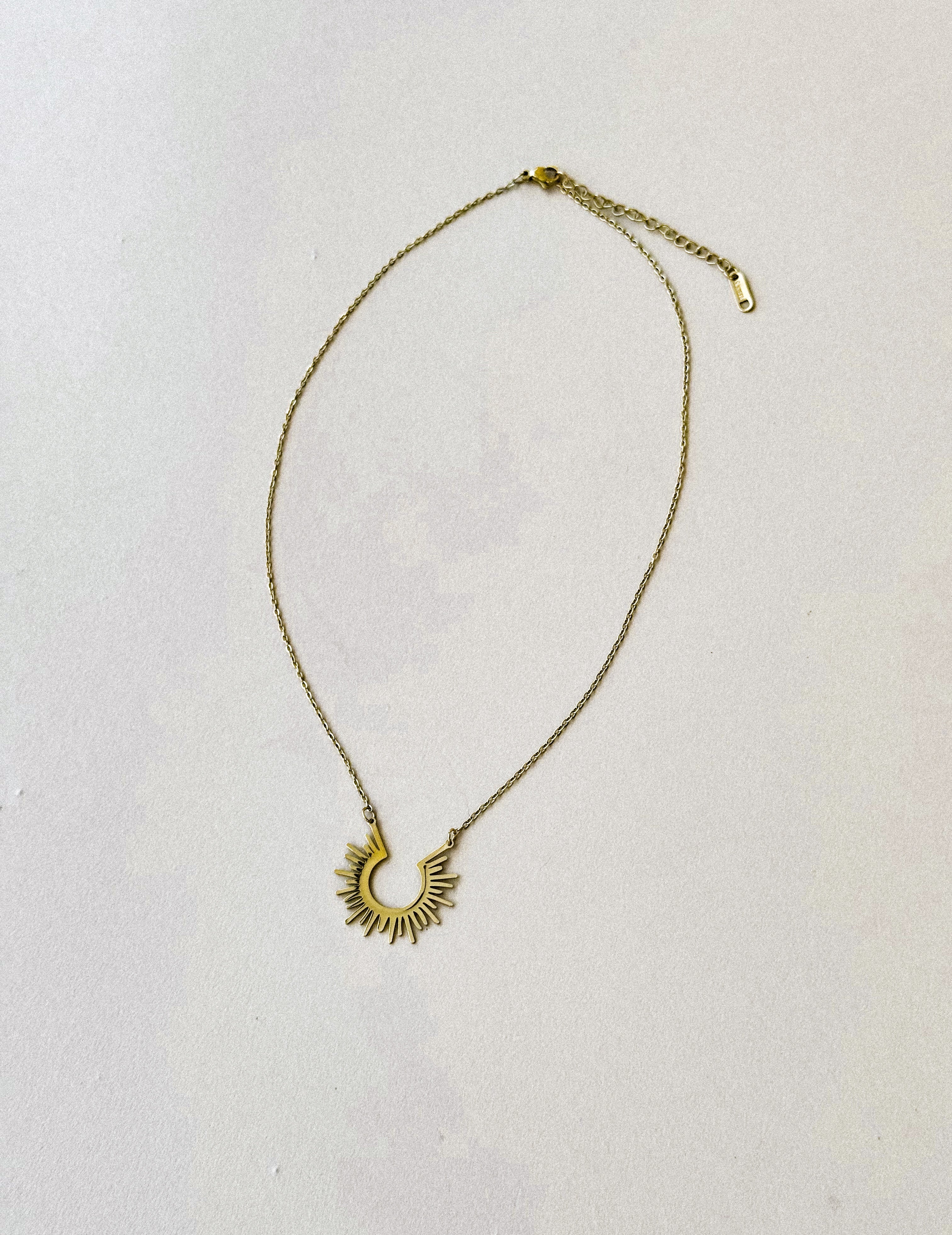 A warm, radiant touch for any look. The Golden Sunburst Pendant Necklace brings subtle Western charm with its sculpted rays and polished gold finish. Lightweight and modern with a hint of boho desert energy, it’s the perfect everyday piece—beautiful on its own and effortless to layer.
