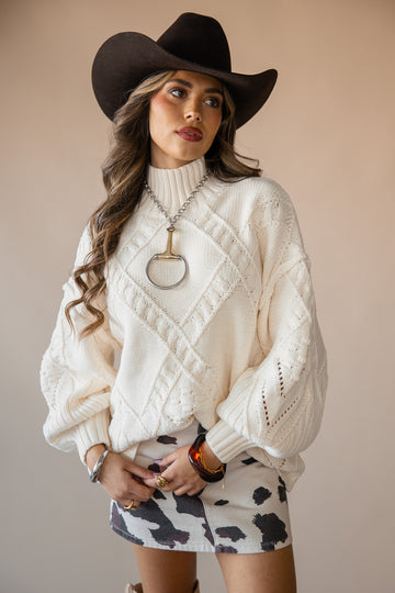 • Crisscross cable knit pattern with pointelle detailing