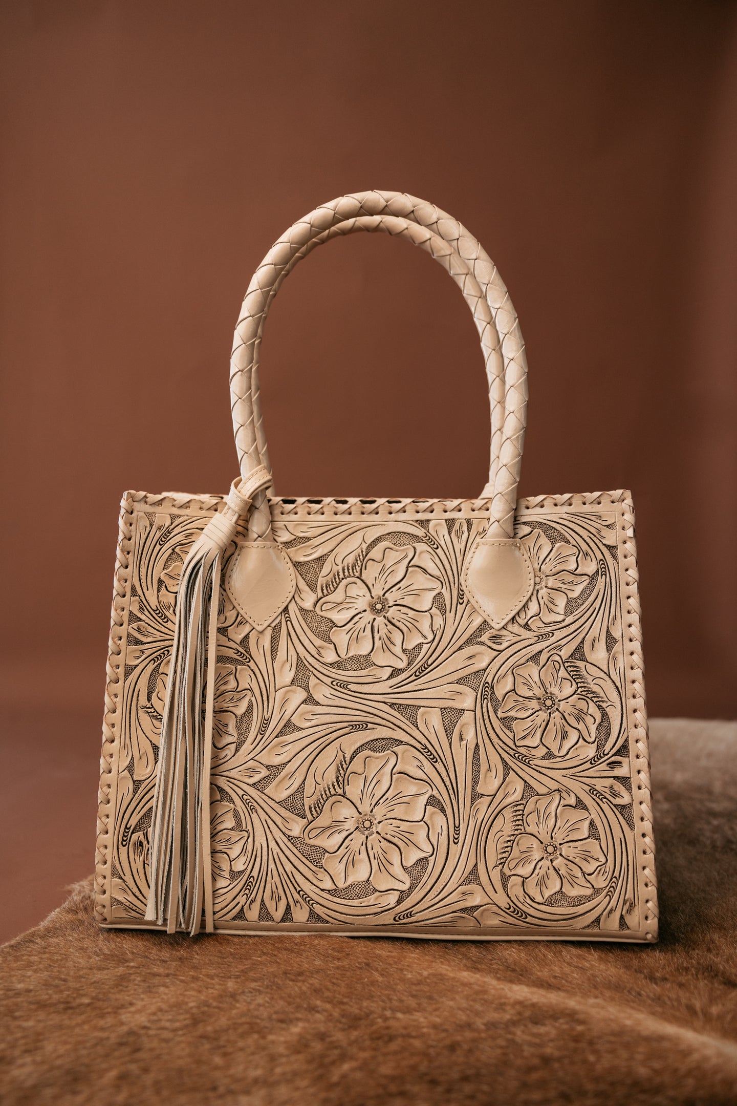 Este impresionante bolso tote es un testimonio de la artesanía y la belleza natural del cuero de plena flor. Elaborado artesanalmente en México, el bolso tote Marcos en color natural presenta exquisitos detalles hechos a mano, correas trenzadas y alegres borlas con flecos. Con su espacioso interior y prácticos bolsillos, es tan práctico como elegante.