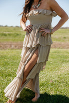 Taupe Strapless Tiered Maxi Dress *PRE ORDER March 18th*