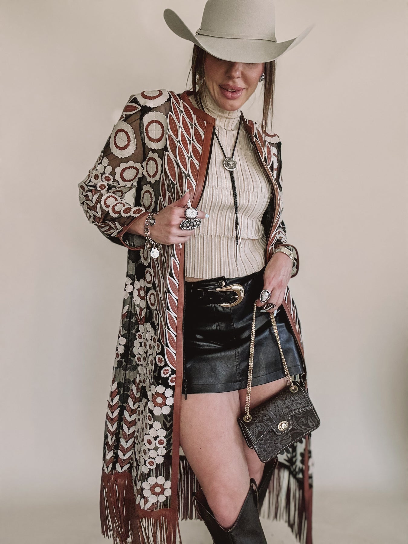 Consigue un look western elegante y moderno con nuestra camiseta sin mangas de cuello alto. Esta camiseta de punto acanalado ofrece un ajuste elástico y un cuello alto para un ajuste cómodo y elegante. Combínala con nuestra chaqueta vaquera para un atuendo moderno y versátil.