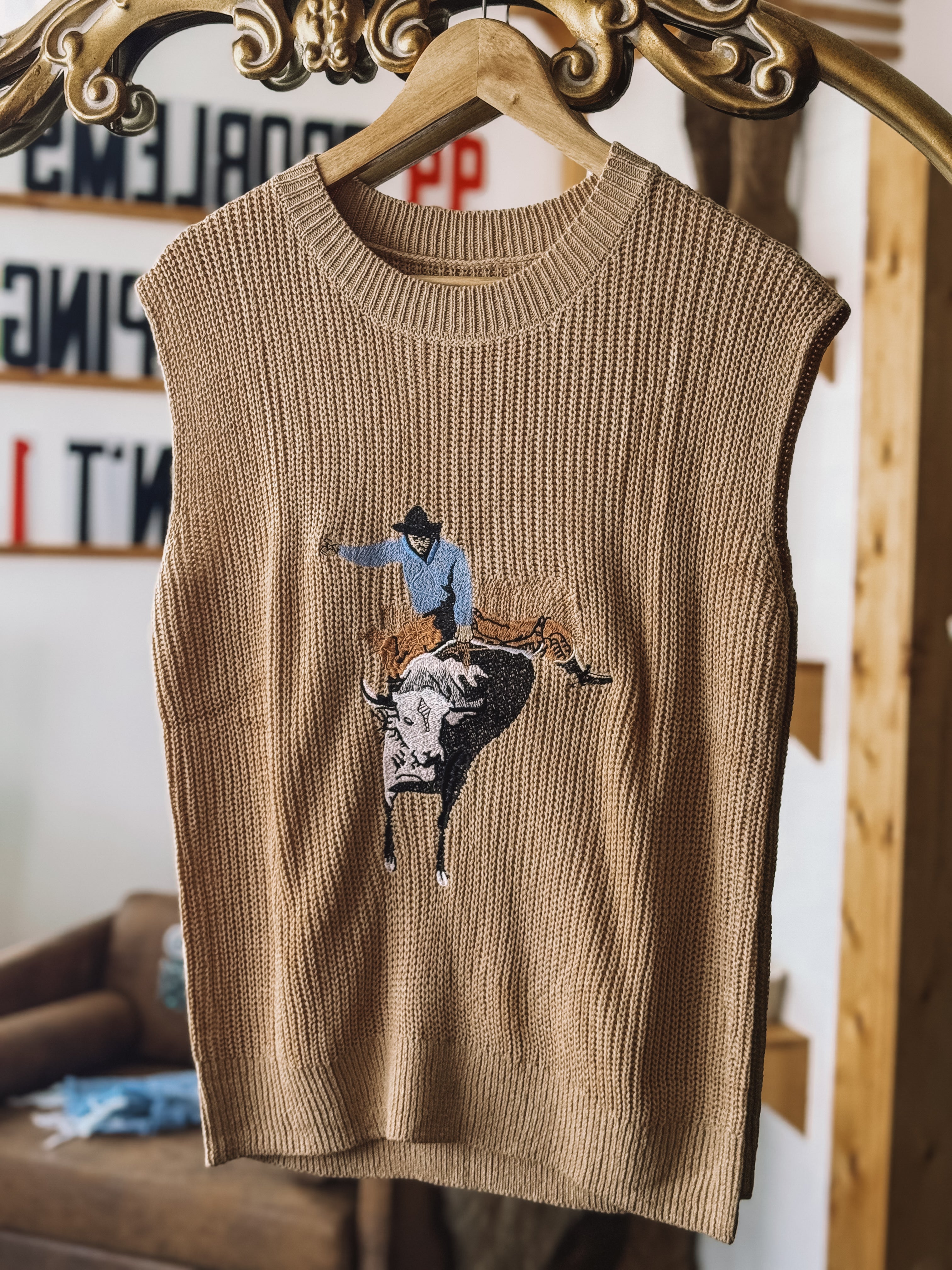 Suéter sin mangas Bull Rider (bronceado)