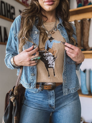 Expertly crafted with washed denim, The Blue Jean Baby Jacket features a collared neck and button closure for a classic look. The long sleeves with button cuffs and curved hem add a touch of style to this timeless piece. Handwash cold for long-lasting wear.