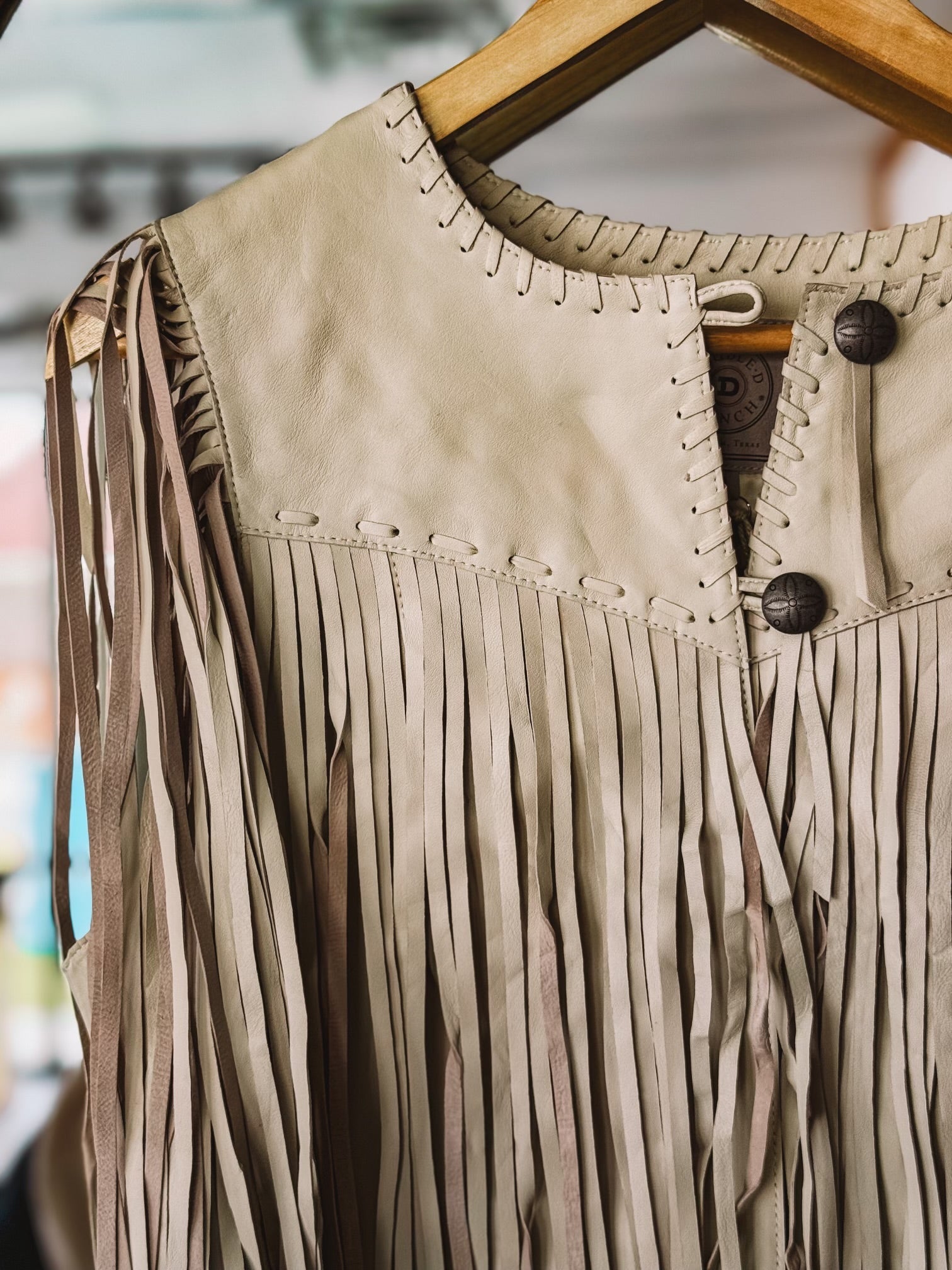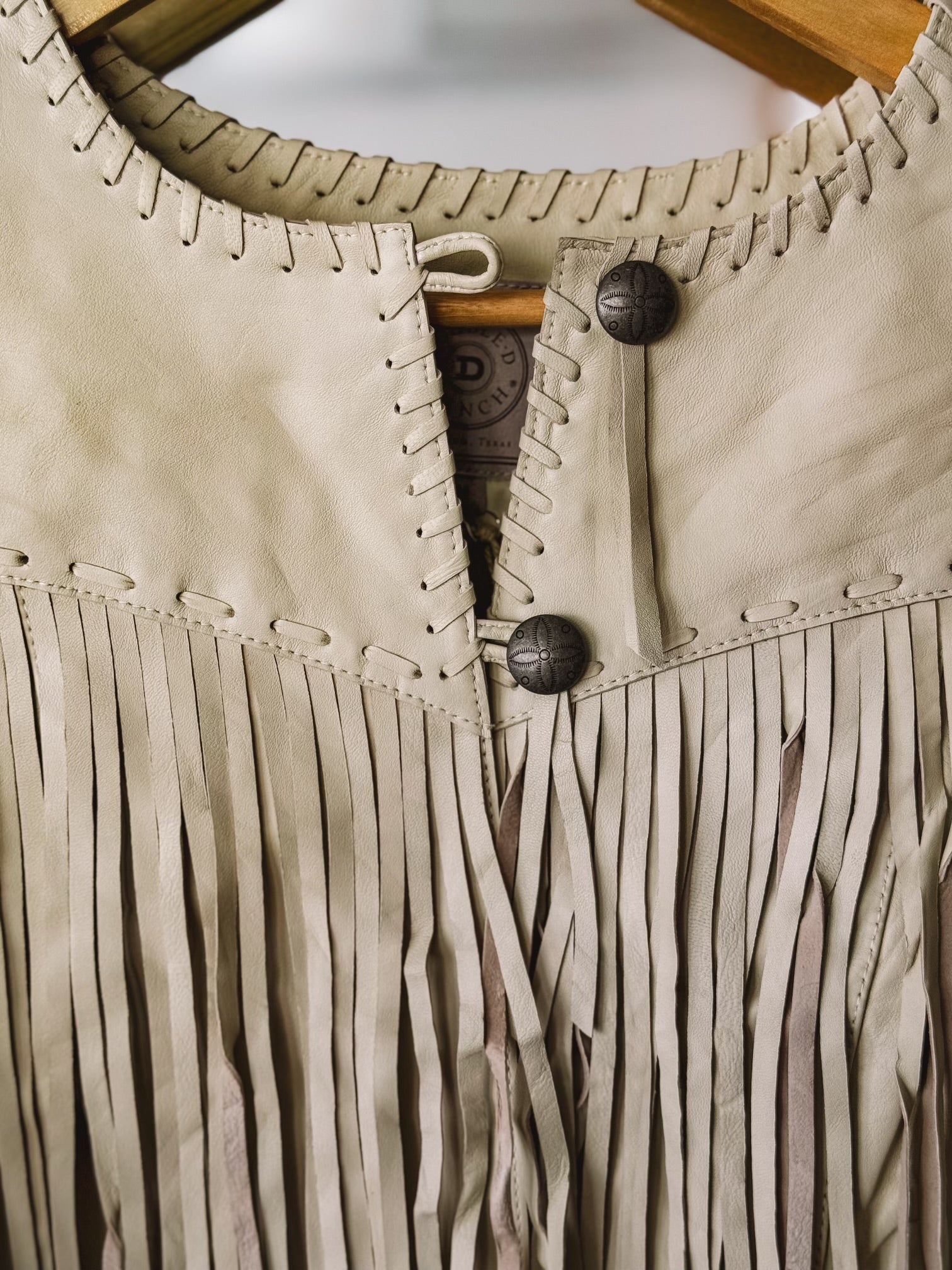 This sheepskin statement-maker has proven it has staying power, over and over again. The straight-line silhouette features double concho buttons at the neck and tonal leather lacing details, but it’s the bold hues and full-length fringe that are going to have you turning heads and dropping jaws! WARNING: The colors just keep getting better and better, you may develop a Sonora hoarding habit!