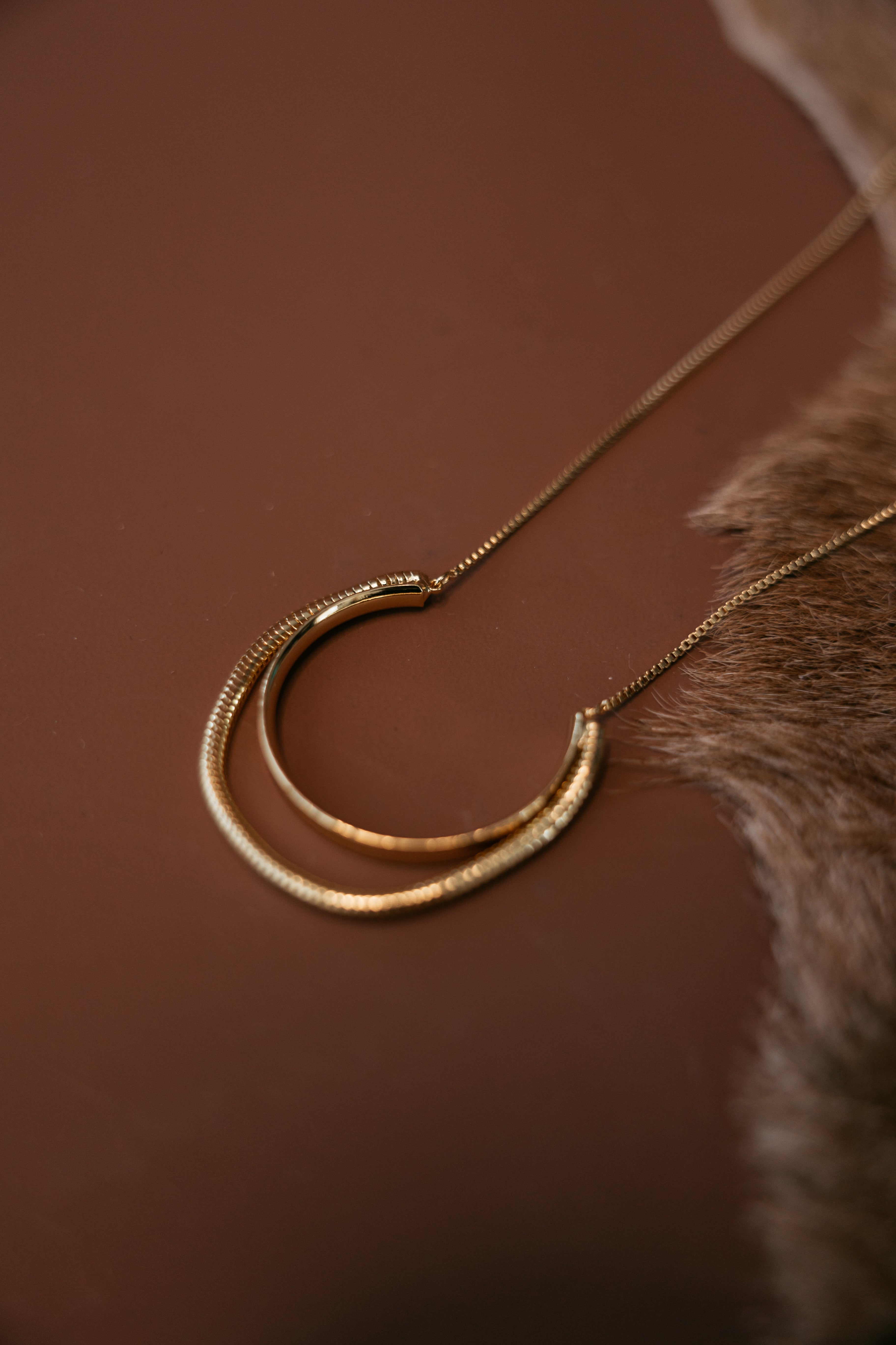 • Dual-layer gold horseshoe pendant design