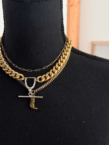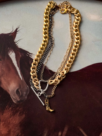 • Half gold, half gunmetal chain with cowgirl boot charm