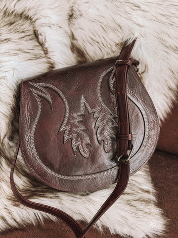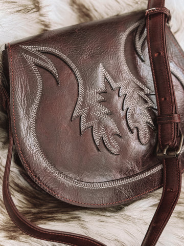 Conheça a Carson Boot Stitch Bag da Agave Sky — sua nova peça essencial para um estilo western com um toque moderno. Confeccionada em couro marrom cereja e com detalhes icônicos de botas costuradas à mão, esta bolsa estilo sela combina charme rústico com artesanato sofisticado. Projetada para uso diário ou para sair à noite, ela foi feita para durar e chamar a atenção.
